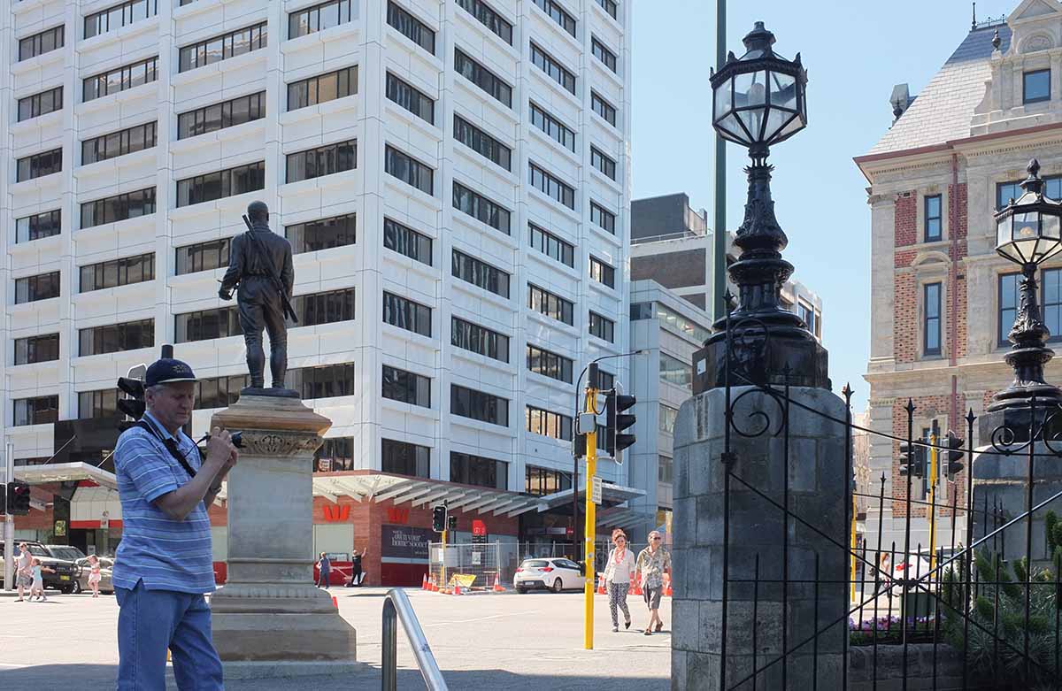The walk started at the Perth Town Hall with a volunteer guide - in case we got lost - and wended down to the gardens along Barrack Street. For some reason it is fenced off but then it never was all that spectacular. Thank goodness they haven't moved old Forrest from the Terrace and even Ritter's Pole is still up - something for the visitors to picture.