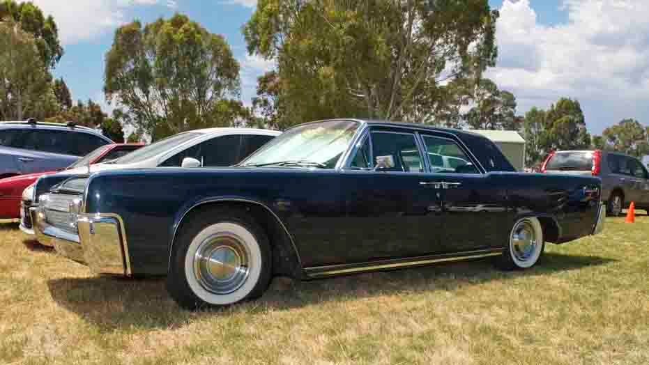 Note to photos: the local team lost woefully at the baseball last night but the Fuji was a winner. Also, note the sticker on the back of the '60 Lincoln. I didn't know whether to be delighted or appalled...