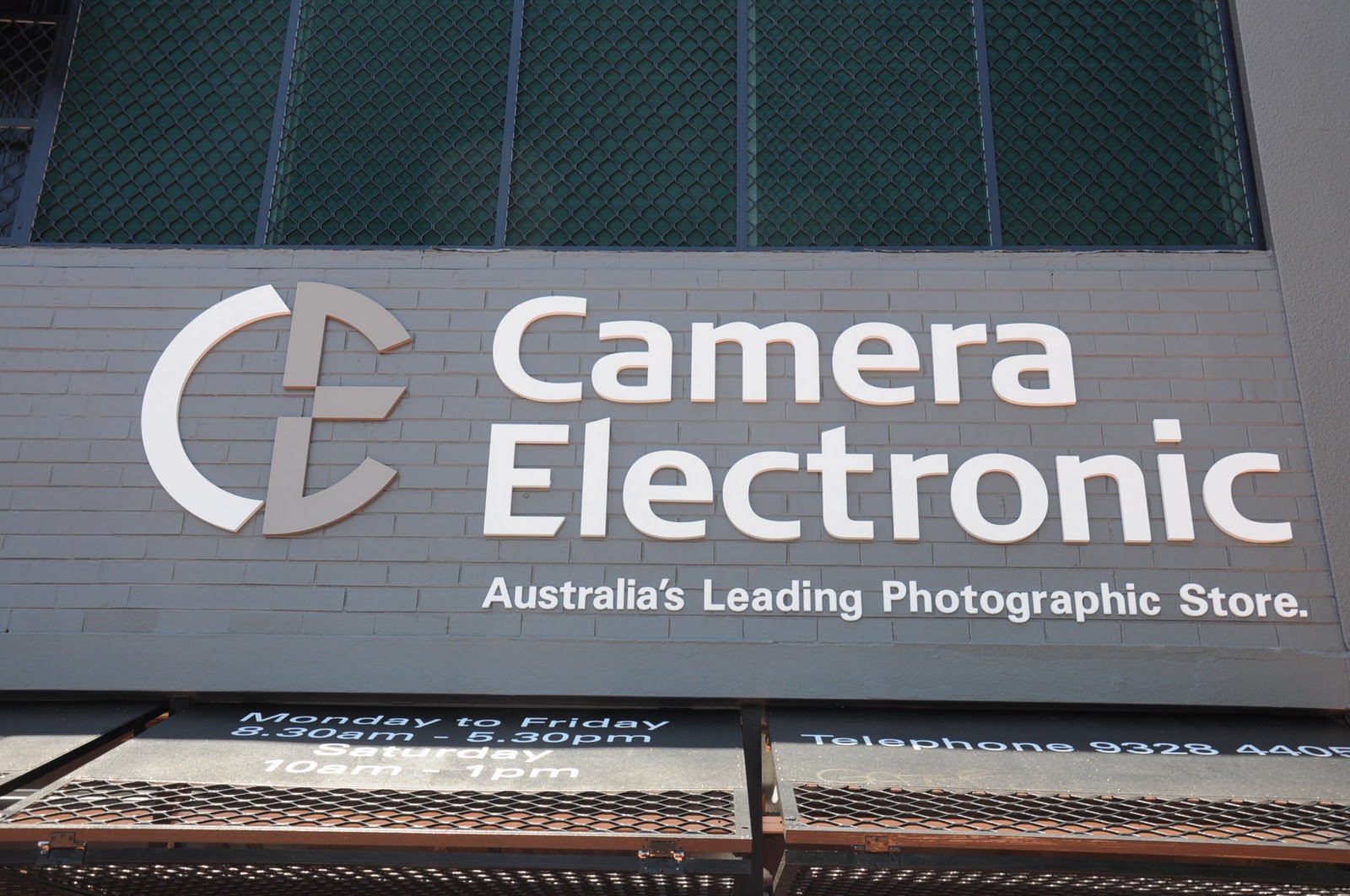 It’s getting on, it’s getting on – the redecorating of the front of Camera Electronic’s building proceeds apace. The grey and black basic scheme is gleaming in the sun and the sign writers have attached the new logo and information to shutters and wall.