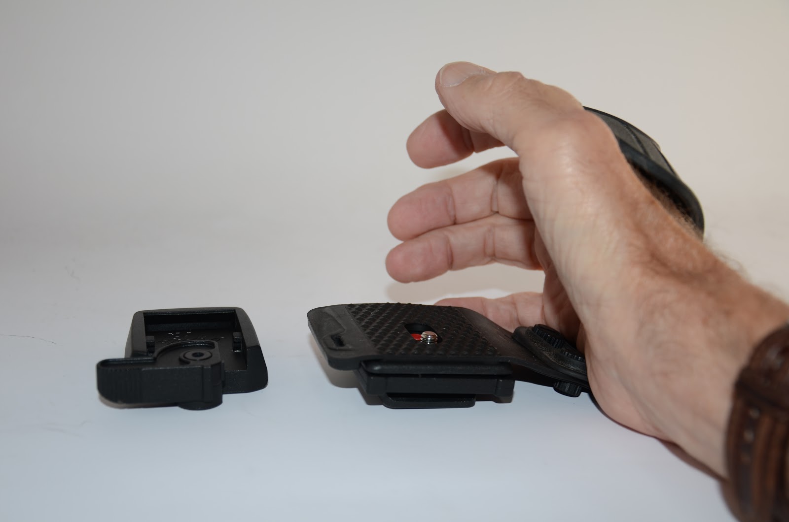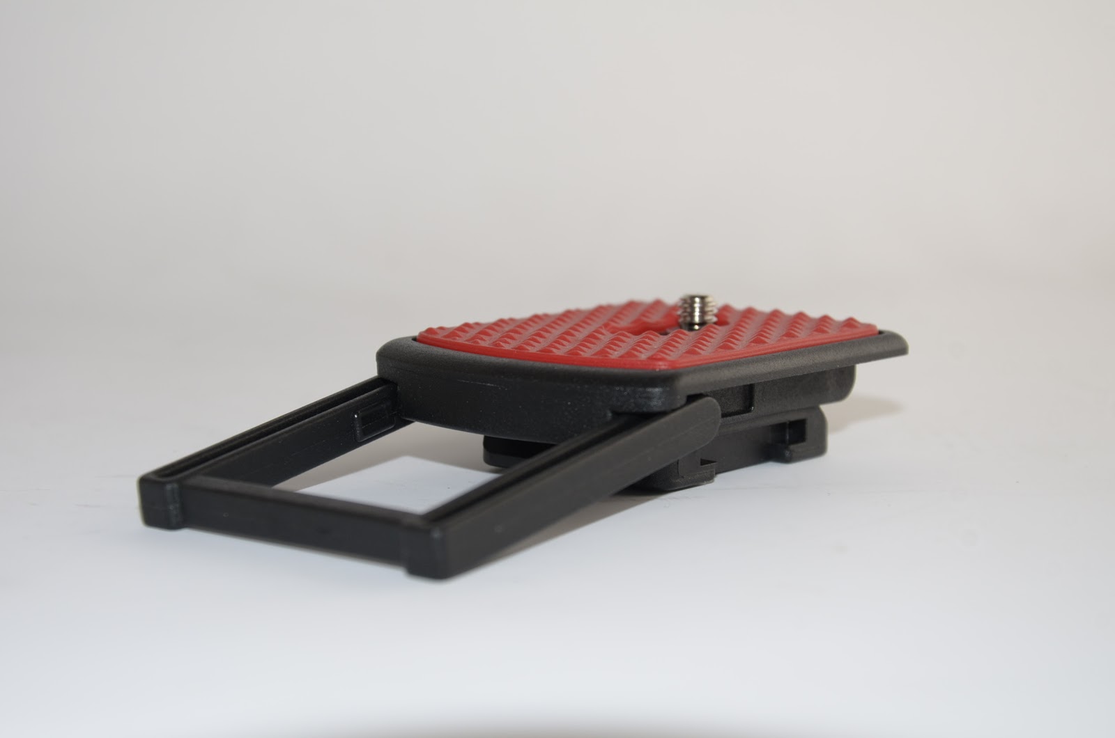 Have a look at the swing-out foot that comes forward from the quick-release plate - this has been designed to allow you to place the whole assembly down on a tabletop for selfies. Neat, eh?