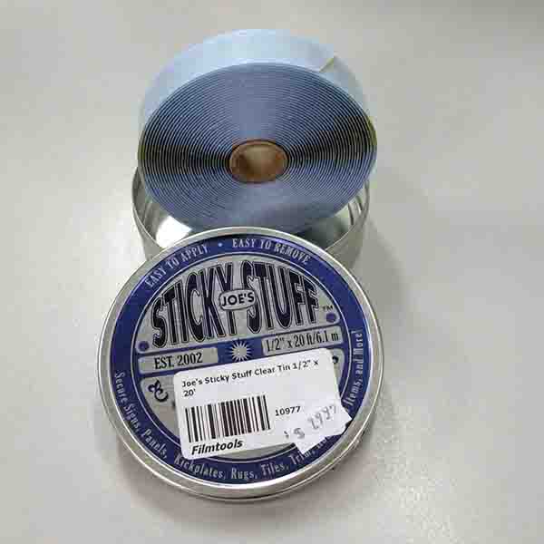 Joe's Sticky Stuff is a roll of ribbon gel that is similar to the adhesive that they stick free gifts onto magazine covers - sort of a plasticized hot glue ribbon. It is used to temporarily stick filters onto lenses and can be peeled off without leaving a residue. I see it in my table-top studio as a wonderful way to secure props without having to make complex supports for them. It is clear and re-usable.