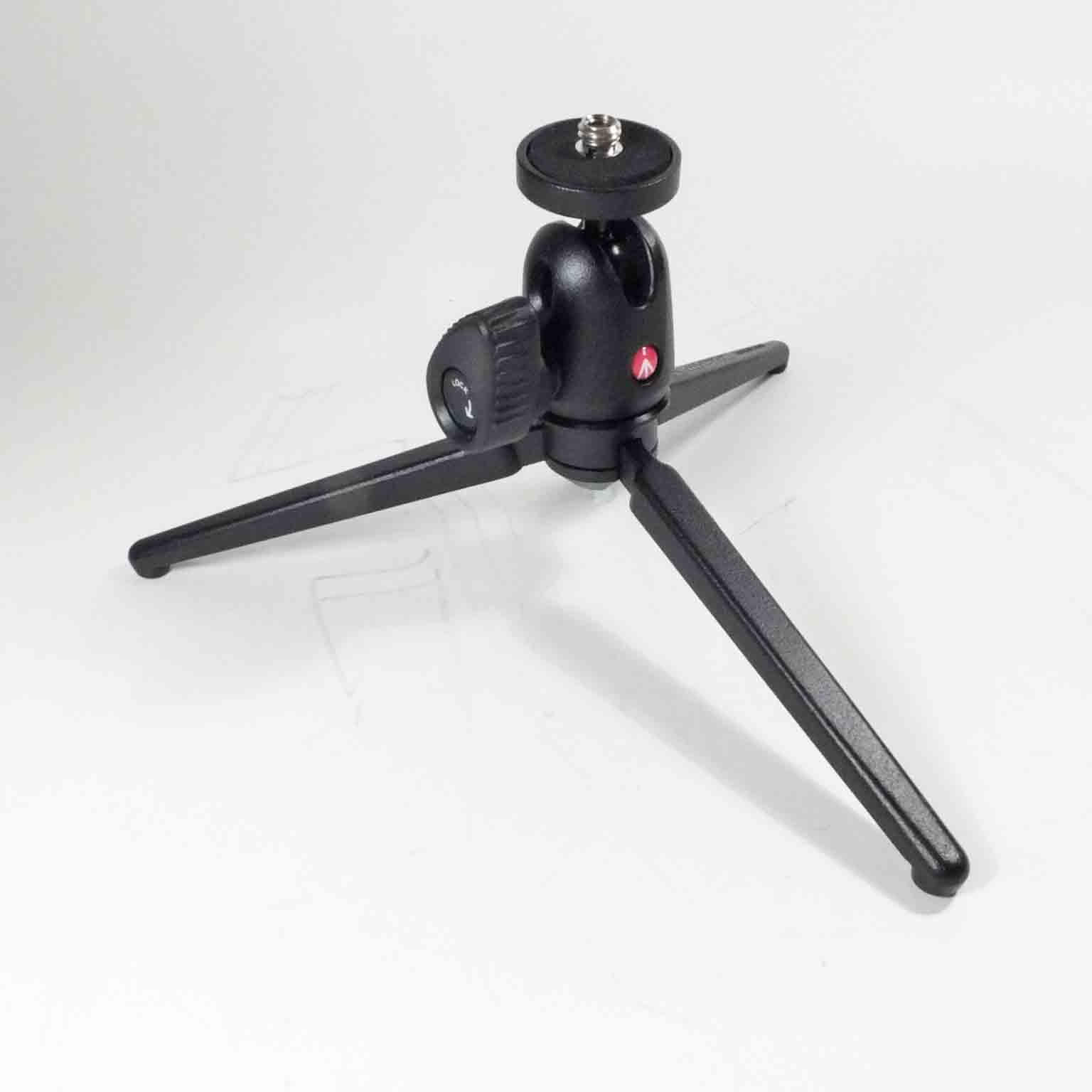 If you are not on a budget, consider the Leica Table Top Tripod. The three legs swivel under each other and lock with the wing nut. There is a standard 1/4" camera screw on the top, and the finish is glorious grey hammer tone.