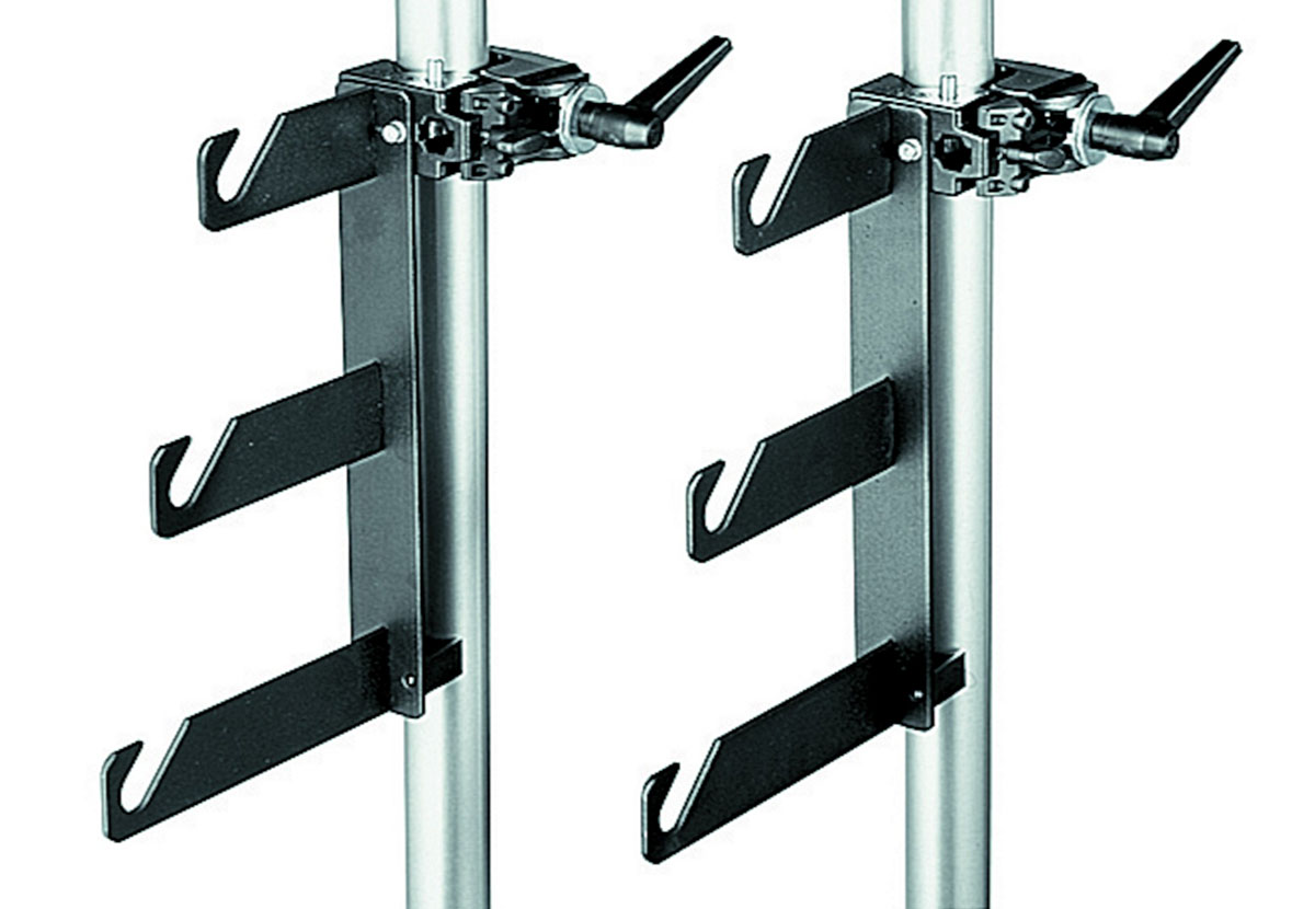 Manfrotto's way of slinging the large rolls of paper or vinyl backdrop material between two supports. They are imaginative in this - there is a single hook for direct attachment to the top of a standard light stand or you can attach multiple hooks to a