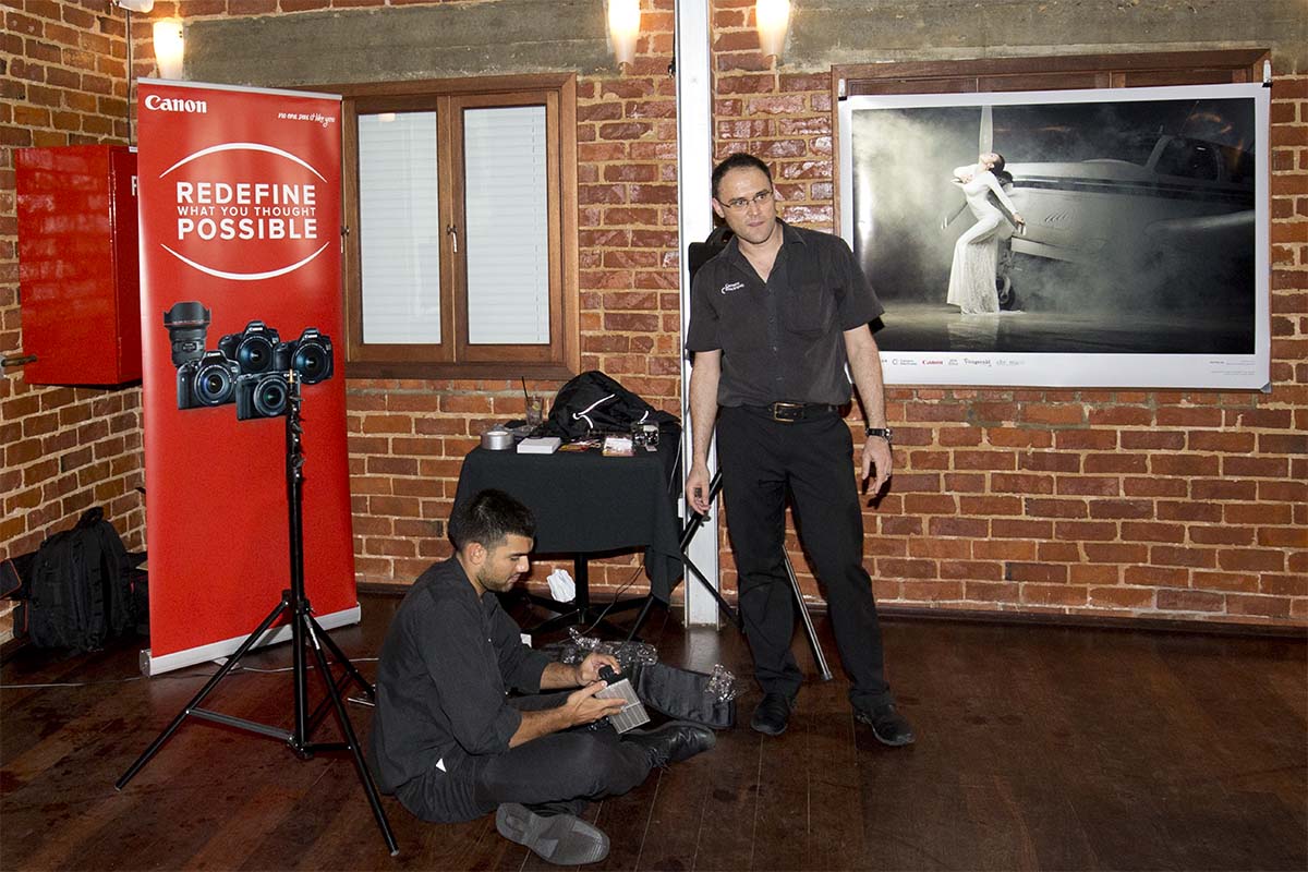 No great philosophy or art, folks, but here's some pictures of the Canon EOS 5Ds night presented by Brodie Butler - and us and Fitzgerald's Photo Laboratories, for that matter. We did the setup, Fitzgerald's did the drop-dead gorgeous prints on Chromajet metallic paper, Canon supplied the brand new camera body and a beaut digital projector and the Oxford hotel supplied beer and snacks. Everyone to their own specialty.