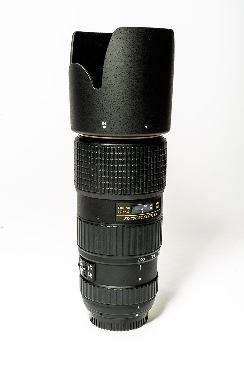 But back to the lens in the heading image. Tokina AT-X 70-200mm f:4 PRO FX VCM-S. That's the usual advertising alphabet soup to tell you that it has a big enough image circle to work on all Nikon cameras, an image stabilising mechanism inside, and no aperture ring. You'll see that readily from the upright image, but what will not be evident until you handle the lens will be the weight of it and the solidity of the barrel. The secret lies in the fact that Tokina use metal barrels for their lenses.