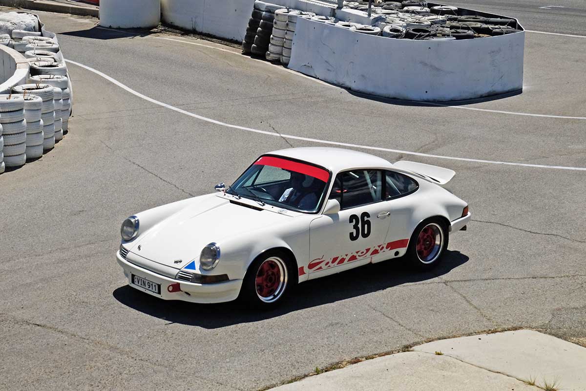 a. Where do they race cars? At car race courses. Some are good places for pictures, and some are awful ( guess which category Barbagallo falls in...). When you are in the good looking place, show the good looking place a lot in the pictures. When you are in the dump, concentrate on the car and blur or fuzz out the backdrop. You may need to use a longer focal length for it. Get up high and get down low.