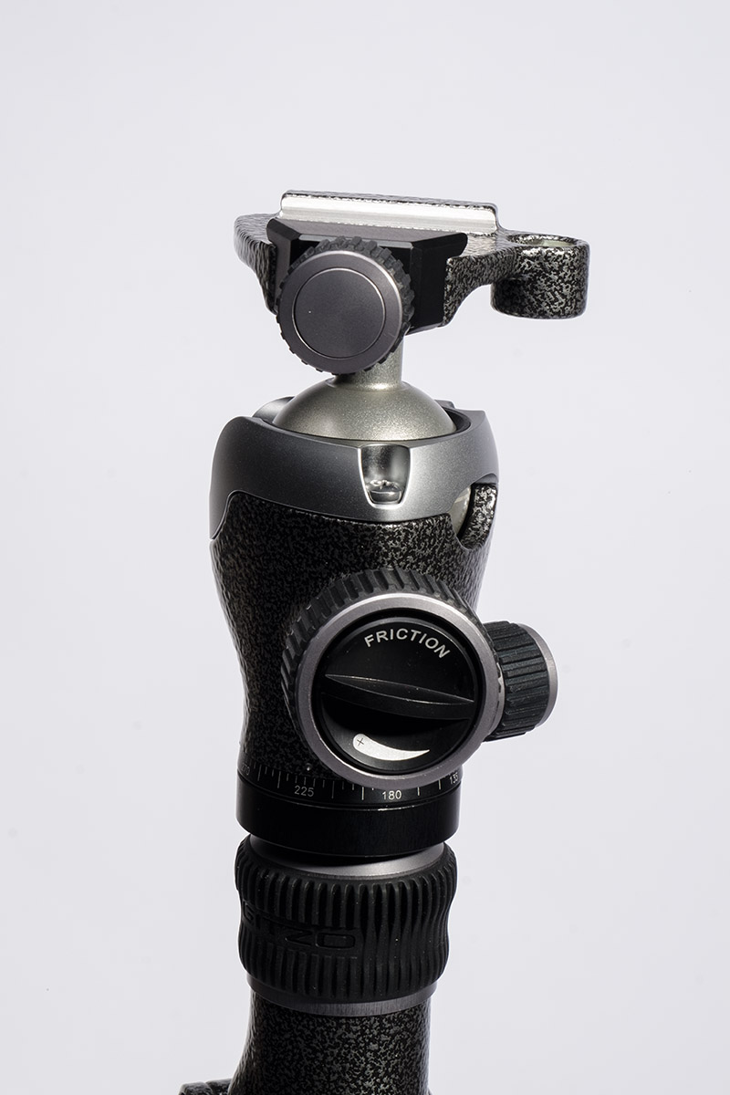The Gitzo tripod you see in these pictures is probably the best light tripod in the world. It has positive twist locks on the carbon fibre legs. Also reversible legs, an extendable centre column, and two position stops on the legs. The head is probably the slickest casting you have ever seen and the ball that revolves in it is freely adjustable for friction - but when it is released from constraint it is the smoothest turning one I have ever felt.