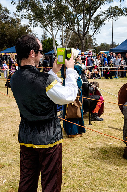 Here's a selection of photographers at the York Medieval Fayre. Some were dressed in period clothes and some were dressed in clothes that had no punctuation marks at all. It did not matter - what was interesting was the selection of cameras that they had chosen to use. The photos by no means show all the people on the ground with a camera, but they do form an interesting list.