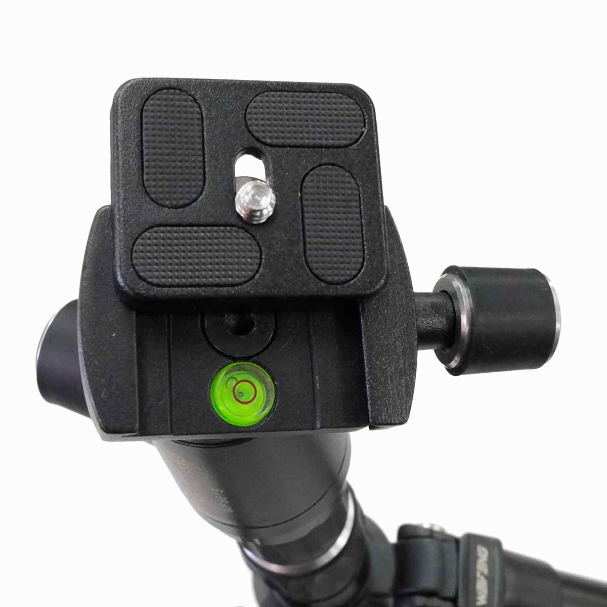 The quick release plate on the top is Arca-size so you can interchange it onto a lot of other gear . Gone, I fervently pray, are the days of Optex and Vanguard and Uncle Fred's Tripod and Bait Shoppe brand tripods that had their own mutually incompatible plates. We regularly see sad hopefuls trolling the streets for old unmatchable plates and it means trouble. Weifeng at least decided to copy the one of the main players.