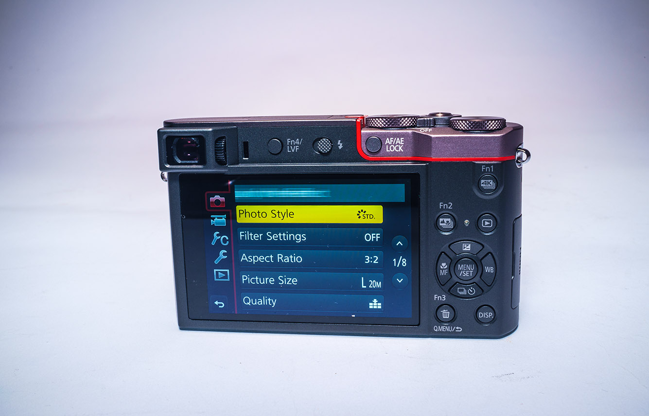 Panasonic Lumix DMC TZ110 box says "Silver" but that is a kind of inadequate description for what looks very much like a two-tone titanium finish with a red accent stripe separating the different colours. Of course you can get these cameras in black, but the appearance of this on is so appealing that it rivets the eye instantly. Will we ever get past black boxes completely? No - but this is a good start.
