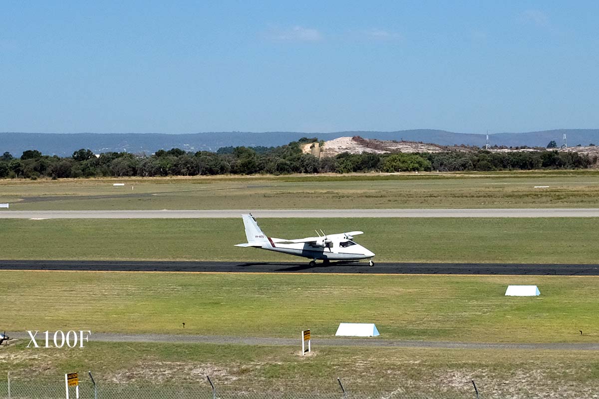 Jandakot, again, and boiling hot. It can't be too much fun to do circuits and bumps in the heat and I daresay there is quite a lot of turbulence coming up off the tarmac. Nevertheless, I balanced one X 100 in one hand and one X100F in the other and tried to track the same planes in the same phase of takeoff.