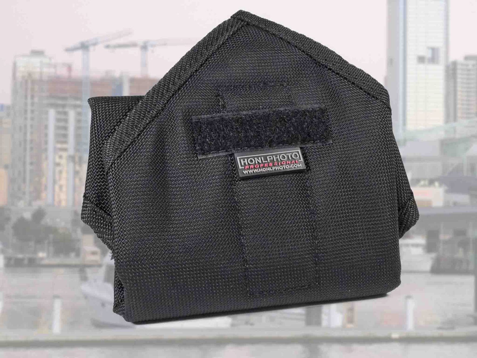 Ballistic nylon on the outside and fleece on the inside with two velcro fasteners. Wrap your precious up in this and pop it in the camera bag or suitcase for travel.