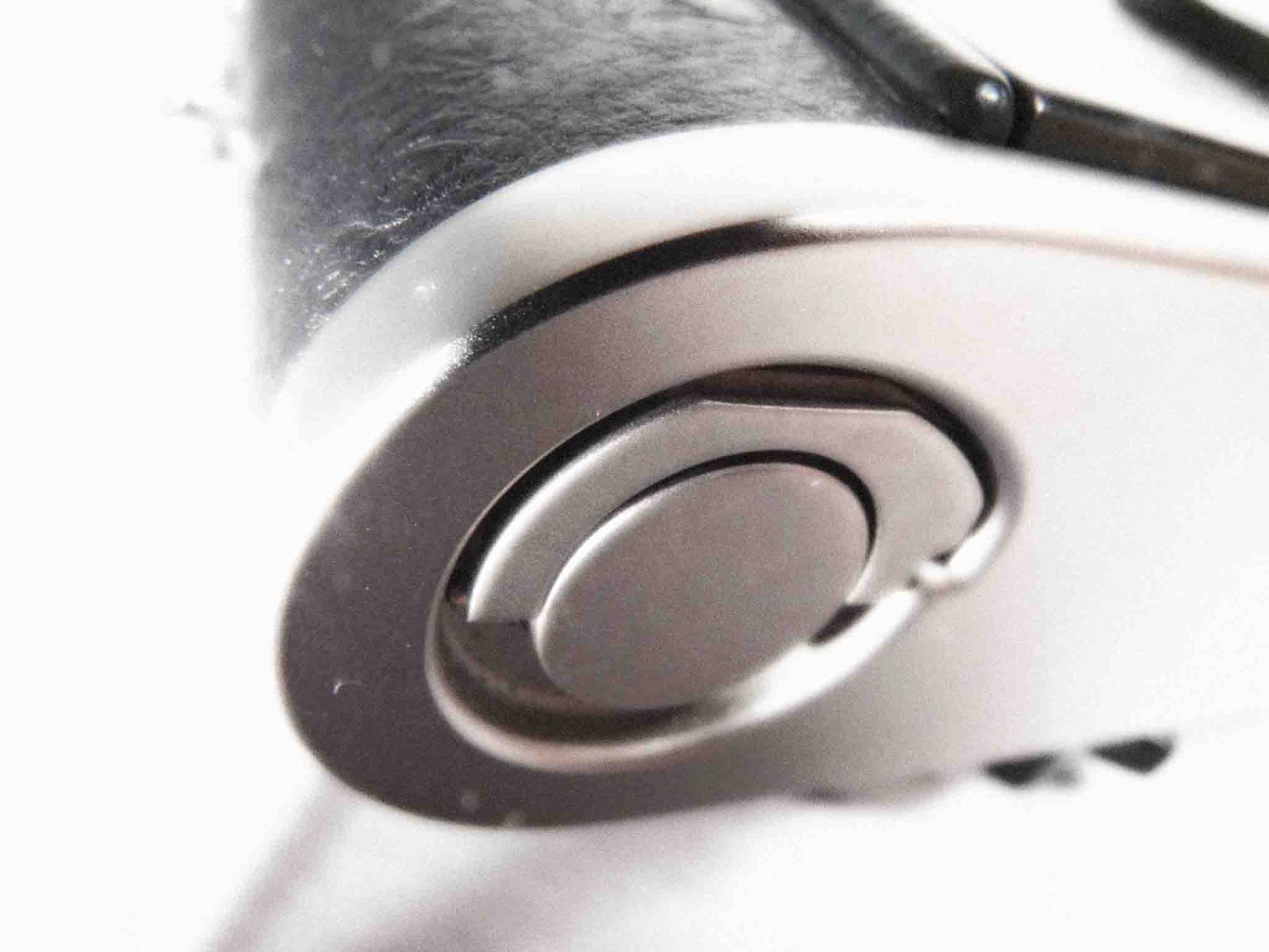 The camera seems to be coated with a titanium finish, and exhibits a strange glow when photographed through the Photoshop Elements program. This finish extends throughout the object, even covering the external surface of the lens barrel.
