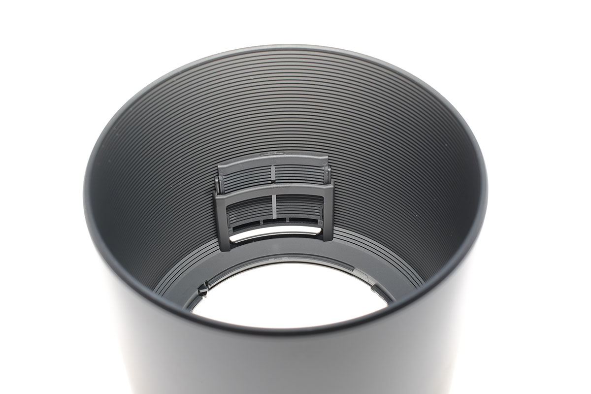 The surprises on the lens hood come in two forms; there is a button to release the hood gently, and there is s sliding panel on the underside. This is not the cover for the waist-gunner's position, though it looks like it - it is hatch to let you reach inside and turn polarising filters to best effect. Note from the shot of the inside of the lens hood that Fujifilm have even gone to the effort of ribbing it for flare reduction - a neat finishing touch.
