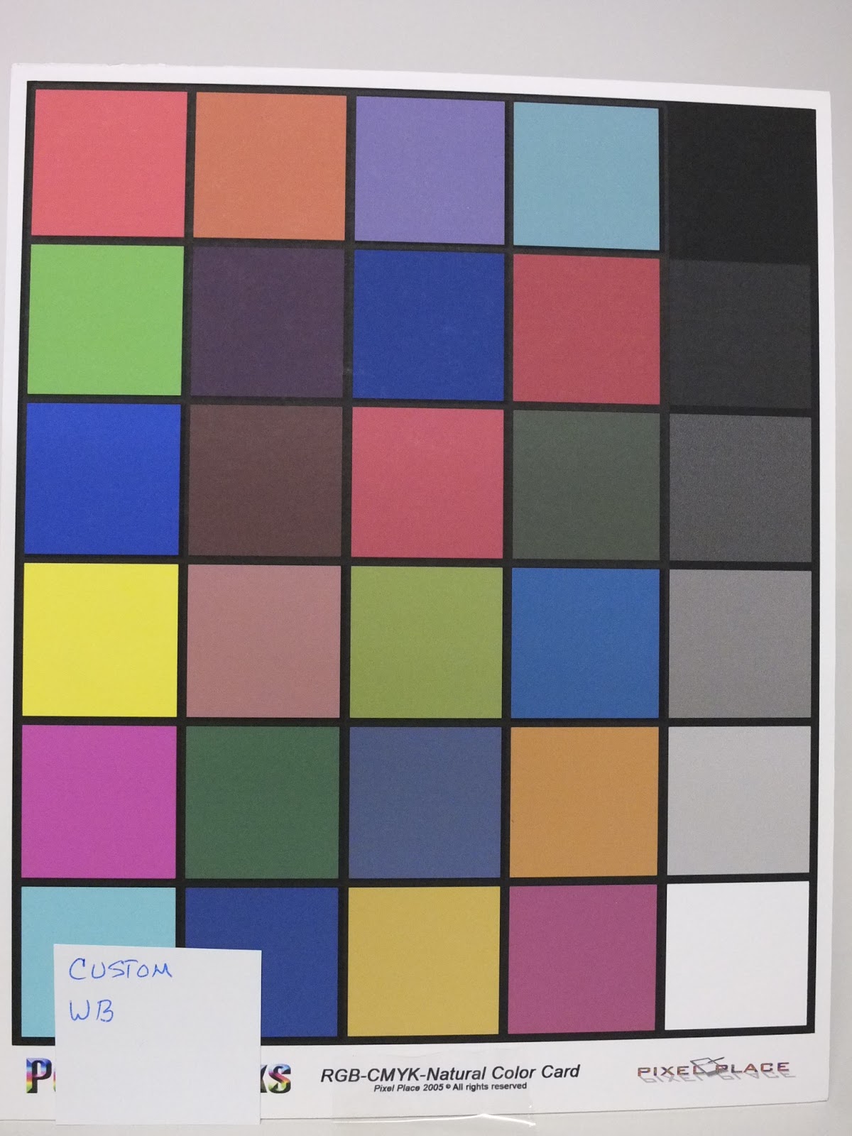 The target was a sort of cheap Macbeth card that we had in the cabinet downstairs - not a real X-rite card, just a substitute.