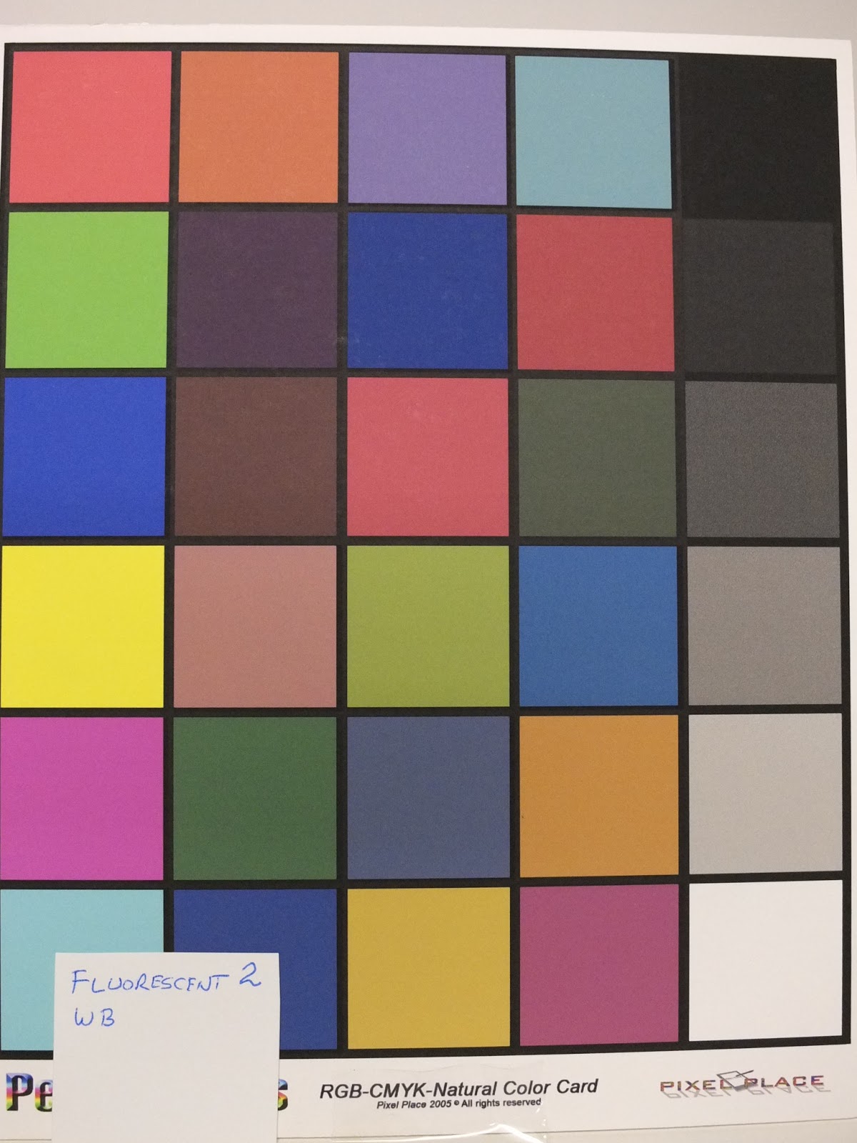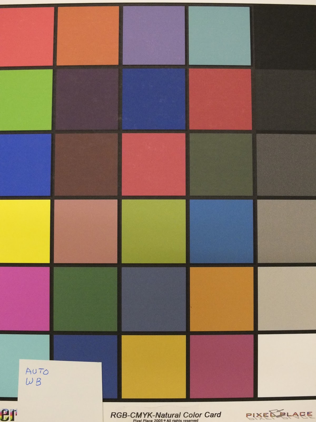Here are the results - in case the hand-written notes don't show, they are auto, custom, flourescent 2 and 3, and Expodisc.