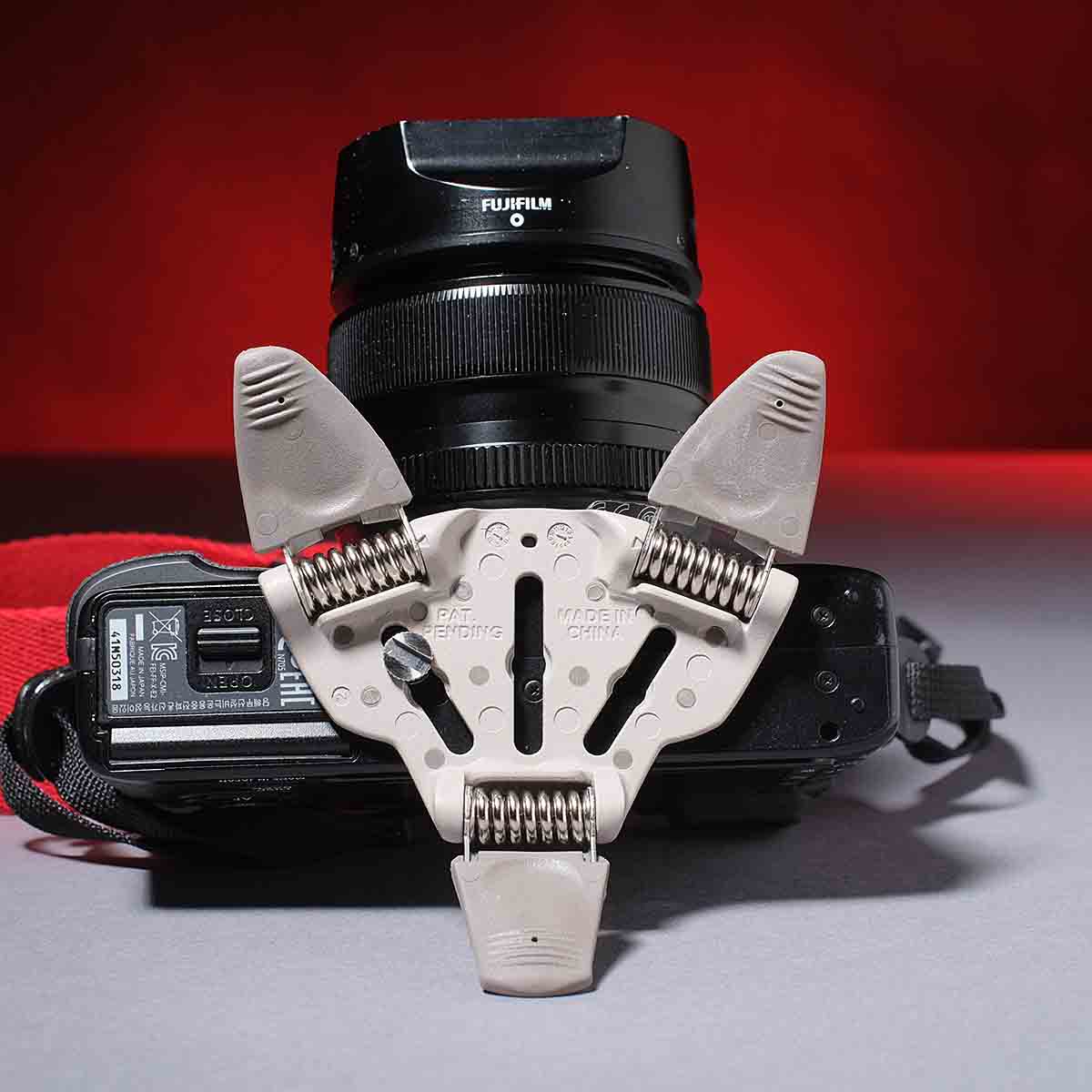 When needed, out the come. there is enough spring tension in the legs to let them be adjusted for various heights and angles- you can straighten the camera out if the surface under it is slightly slanted. Of course the legs suggest a table top but remember that car bonnets and roofs are always available, as are rocks, fenceposts, and stone walls. Note that it supports the Fujifilm X-E2 even with the weight of the latest firmware update...